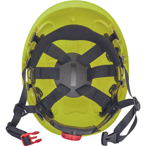 The ALPINWORKER helmet is one of the lightest helmets on the market, weighing only 460 g. The polycarbonate shell is ventilated to ensure maximum comfort for the user and is equipped with special holders for attaching the headlamp. The short visor is suitable for working at heights. The integrated comfortable glasses meet the EN166 standard. Adjusting the head circumference using the rotary wheel. Circumference range: 53-66 cm. 6-point fastening of the head cross, unique system of 4-position belt depth adjustment, 4-point chin strap, effective heat resistance: – 30 °C to +50 °C, service life of 5 years