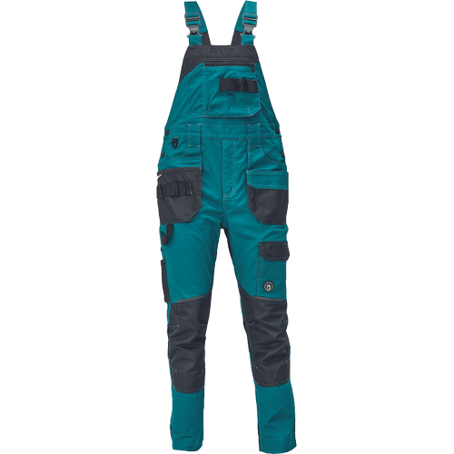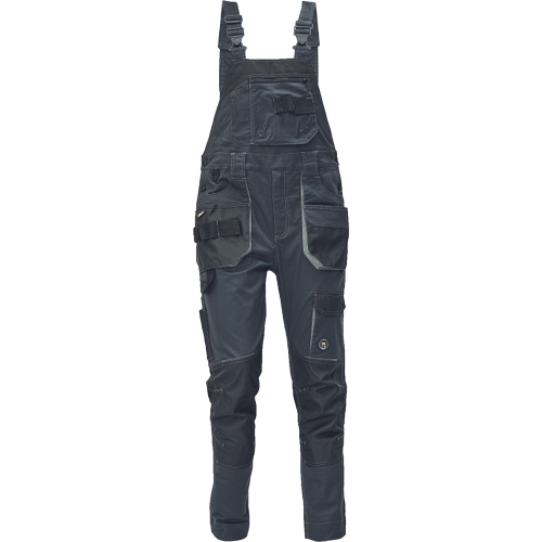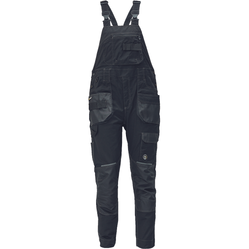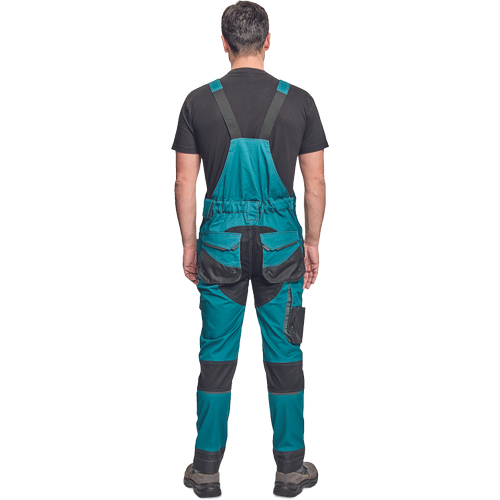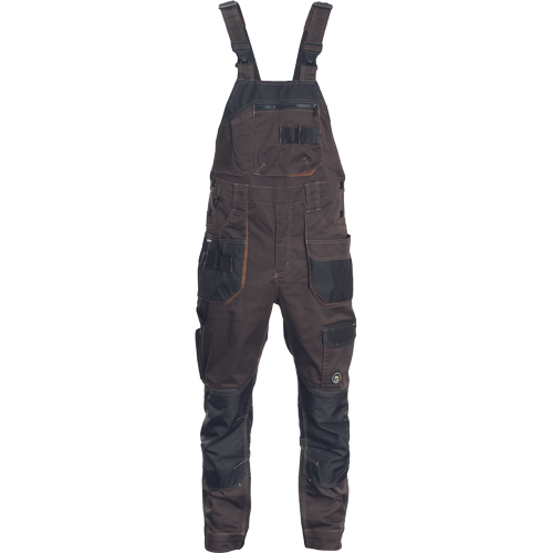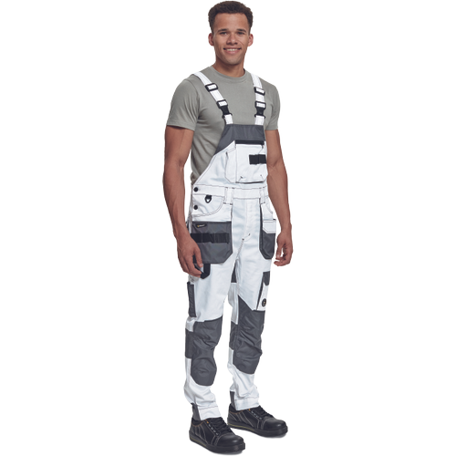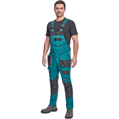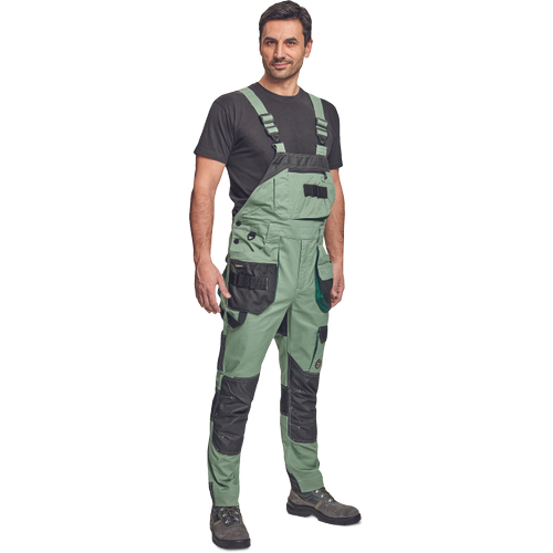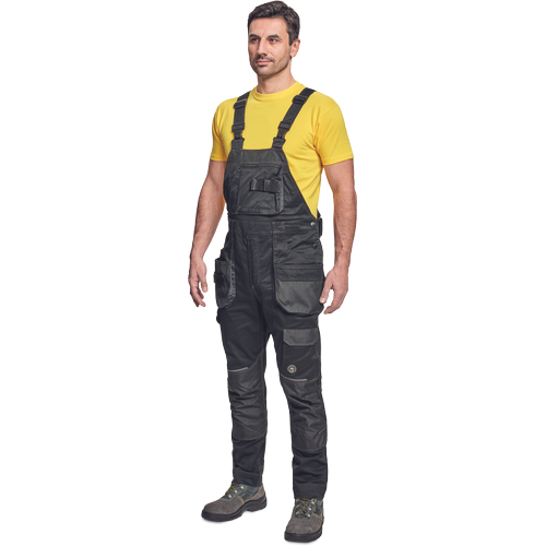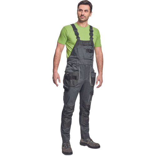 • men’s working bib pants • elastic inovative fabric TRIFIBETEX® • elastic waist, durable tripple stitching of legs and crotch • Oxford 600D reinforced knee parts with input for knee pads • spacious multifunctional front pockets with tool strap • reflective details tone in tone • extendable lenght of legs