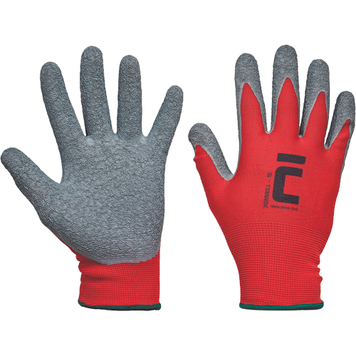 • knitted seamless nylon gloves (15GG) • wrinkle latex application on palm and fingers • elastic cuff