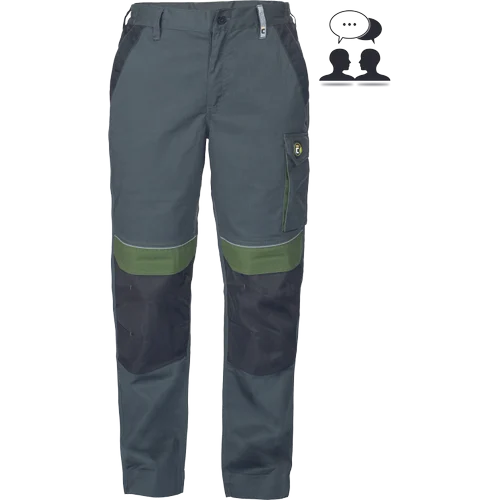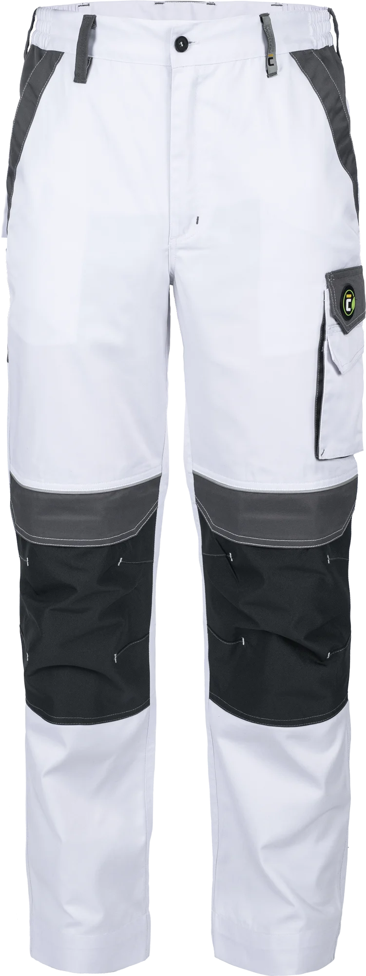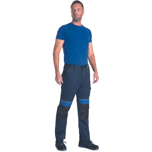 • men’s working pants with an elastic waistband • 2 side pockets • 1 left thigh pocket • 2 back pockets with velcro closure • knee part reinforcement with with possible knee pads insertion • reflective details • adjustable leg length