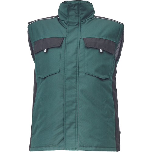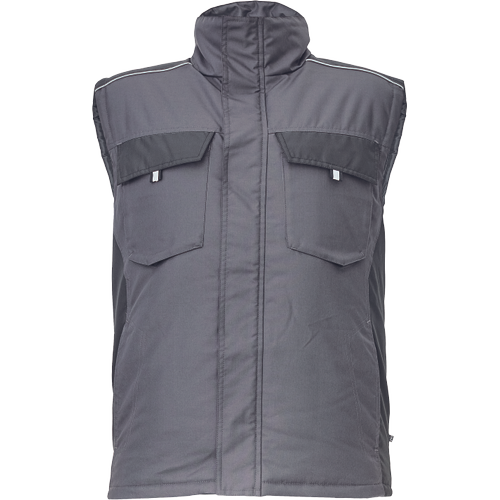• men´s winter bodywarmer • zipper closure covered by velcro flap • 2 side pockets, 2 chest pockets • 1 inner cell phone pocket • reflective elements
