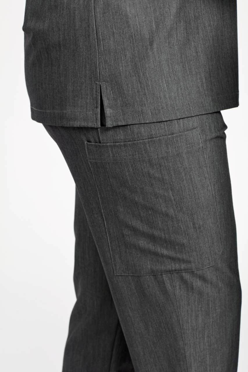 V-neck style with single chest pocket