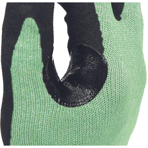 • knitted seamless gloves dipped in a sandy finish nitrile in a palm and fingers • cut protection level F • with a crotch reinforcement between a thumb and an index fingers • suitable for a manipulation with sharp and oily products, glass handling or processing with oily metal parts and sheet metal