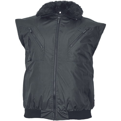 • men’s insulated winter pilot jacket with hood integrated in the collar • detachable inner linning and sleeves • 2 side pockets • 2 zipper chest pockets • 1 small left sleeve pocket • sleeve hems and bottom rim made of ribbed knitted fabric