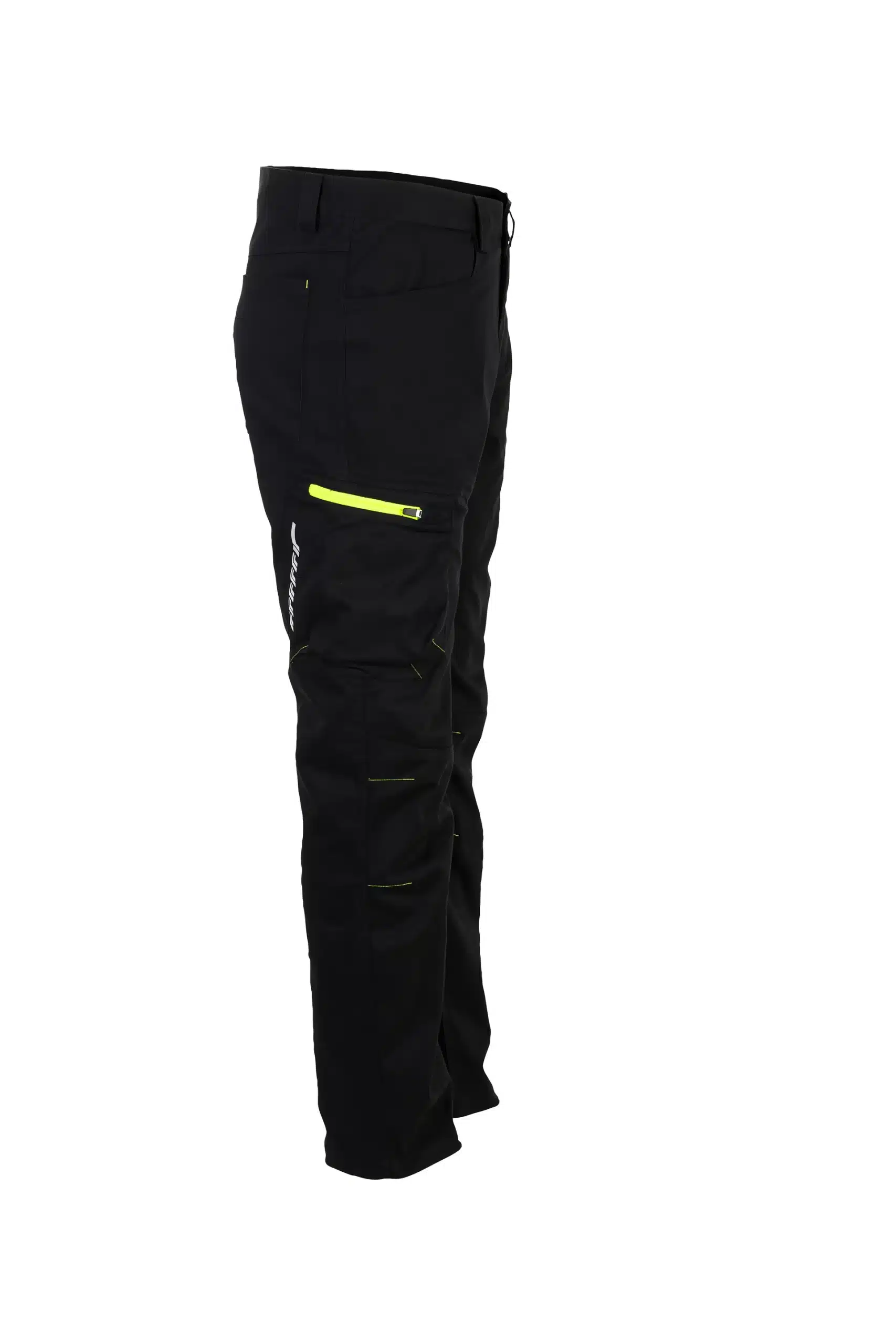 – Oberschenkeltasche rechts mit gelbem Reißverschluss