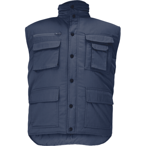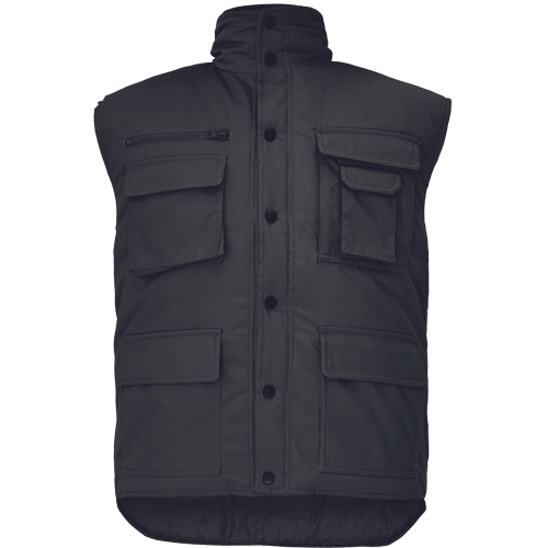 • thermoinsulated men’s winter vest with stand-up collar • extended back part • plastic poppers fastening • 2 big front multifunctional pockets • 2 chest multifunctional pockets